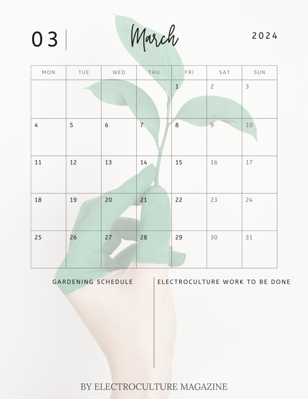 Unlock the secrets to unparalleled plant growth with our 2024 ELECTROCULTURE Monthly Planner! Inside, you'll find high-resolution printable PDFs meticulously crafted to guide you through each month of the year. From strategic planting schedules to tailored care instructions, this planner equips you with the tools to cultivate a thriving garden. Elevate your gardening experience and watch your plants flourish like never before!
